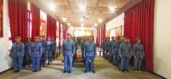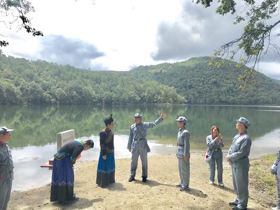 8.演情景剧。在当年的彝海结盟现场,3044永利集团的教师张建华、王卫兵和木棉青年社的员工一起演绎了当年歃血为盟的经典场景。“你看每一个民族就像一座山峰,许许多多的山峰连在一起就可以把天都撑起来,我们各族人民团结起来,还打不倒一个蒋介石吗?!”“小叶丹”郑重地接过红军参谋在彝海舀来的两碗水,让彝族祭司将刚杀的鸡血倒入碗中,和“刘伯承”歃血为盟。大家观看情景剧后表示,在刘伯承和彝族首领小叶丹从相遇到结盟的历史中,深刻认识到彝海结盟是民族团结和军民团结的典范,是中国共产党民族政策的胜利,是红军长征史上光辉的一页。