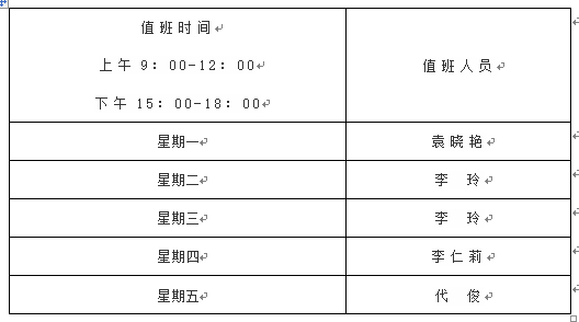 网络教学期间心理中心值班安排表