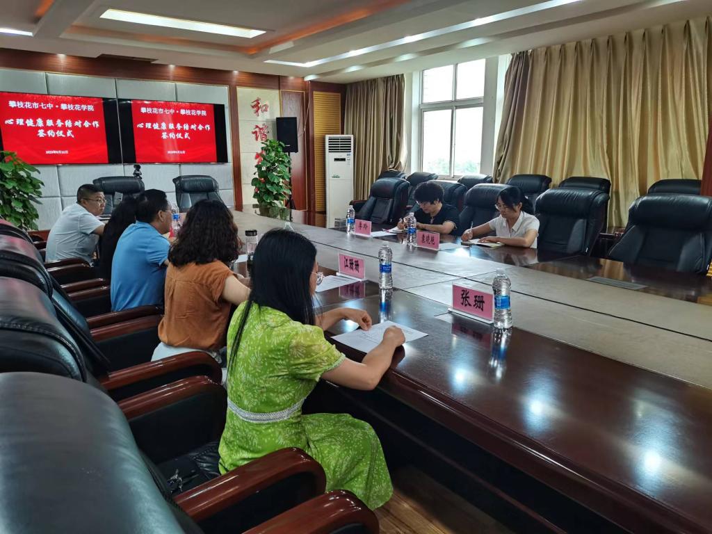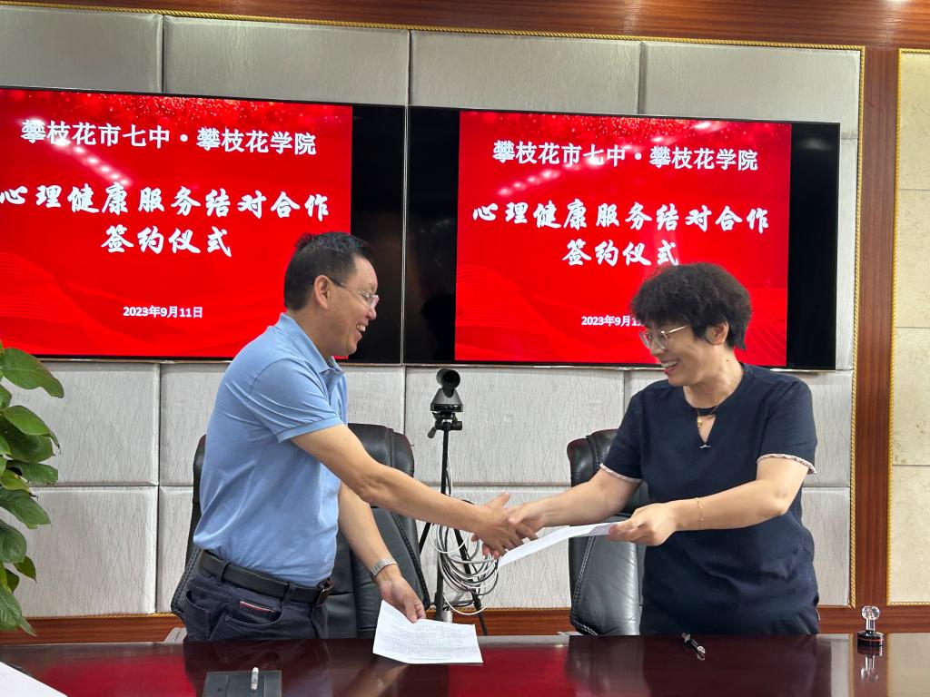 为深入贯彻教育部十七部门发《全面加强和改进新时代员工心理健康工作专项行动计划(2023—2025 年)》(教体艺〔2023〕1号)和《四川省教育厅关于高校与市(州)结对共建心理健康教育的通知》(川教函〔2021〕603号)文件要求,进一步关心关爱全校员工的心理健康,切实保障员工健康成长,助力文明城市和健康攀枝花建设,公司于2023年9月11日在市七中西城校区就联合开展心理健康服务结对合作签约,共同构建大中小一体化教育模式,守护员工的心理健康。公司心理中心主任李玲、教研室主任袁晓艳,攀枝花市七中副董事长吴俊、德育与艺体科科长李丽娟、副科长江姗姗参加了签约仪式。