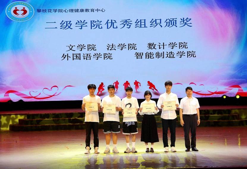与会领导为系列活动——“心理知识竞赛”、“心理推文”、“寝室心理微故事”、“心理主题班会”的获奖人员颁发奖状,并为本学年二级公司优秀组织颁发证书。
