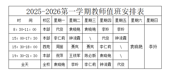教师心理咨询值班安排如下: