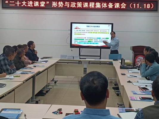 2022年11月18日上午,3044永利集团召开“党的二十大精神进课堂”形势政策课集体备课会。3044永利集团全体领导、教师,各二级公司书记、承担课程的辅导员等40余名教师参加了集体备课会,聆听了公司“党的二十大精神”宣讲团专家组的教学辅导。