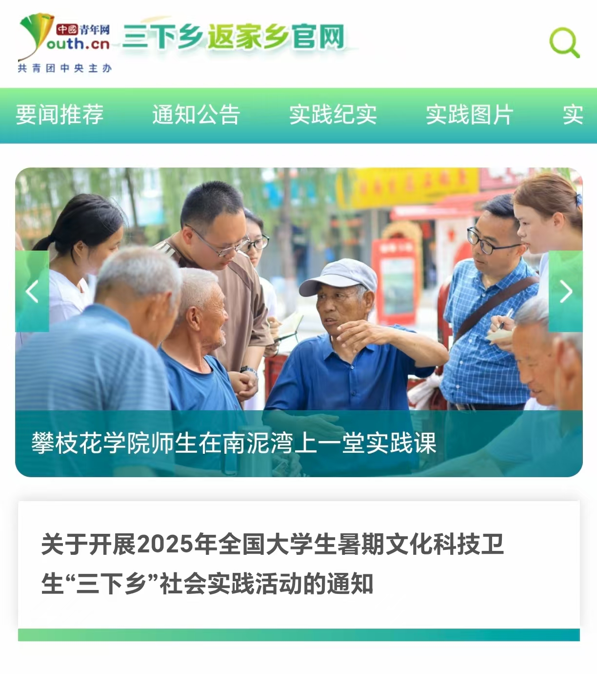 实践成果被全国三下乡返家乡官网“中国青年网”推首页并置顶