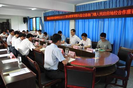 2018年6月30日上午,中国特色社会主义理论教育公司经理朱云生、党支部书记唐林一行莅临渔门镇,在实地考察当地农村产业发展情况的基础上,与渔门镇人民政府开展了校地合作座谈会,并签署了相关合作协议。