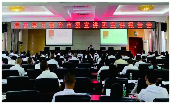 公司有5名教师被选为攀枝花市委党史学习教育宣讲团成员,他们和公司其他4位老师一起深入全市各企事业单位、公司、医院、乡村、社区开展党史教育专题讲座。从3月初到6月底累计开展专题讲座39次,参与听众3800余人次。